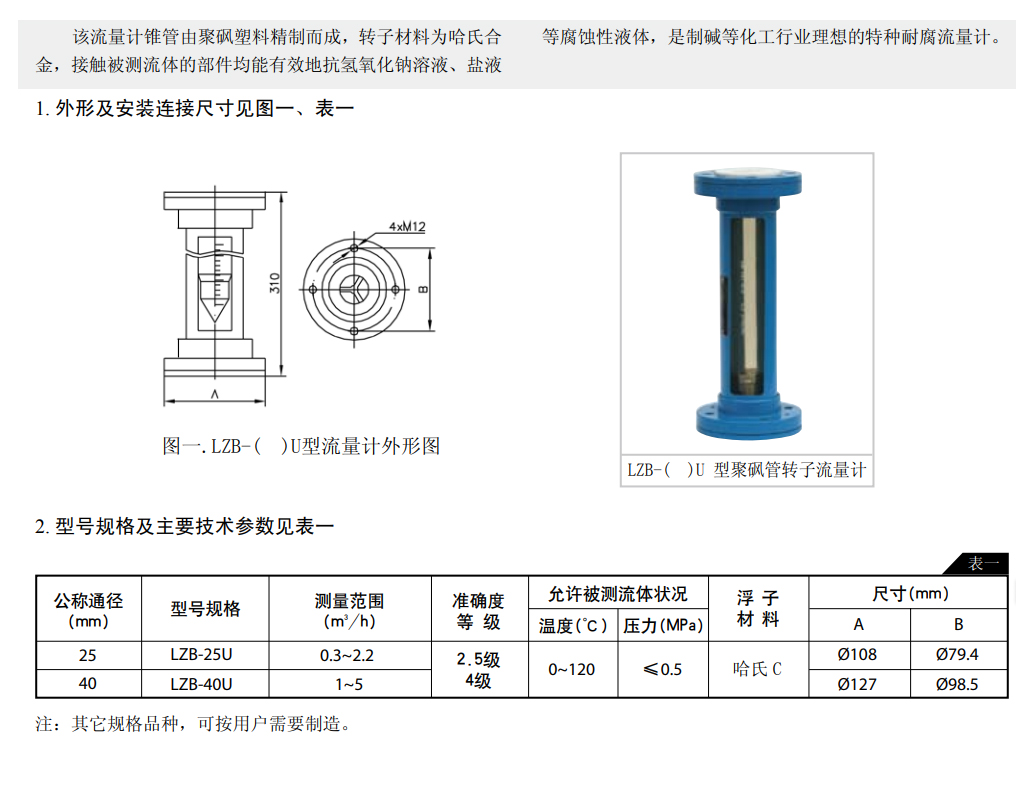 LZB-( )U型聚砜管轉(zhuǎn)子流量計